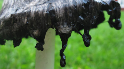 Halva hönsinredningen ligger i gräset utanför hönshuset och väntar på att bli bortforslat, vilket skall ske i morn och då skall resten av inredningen ut hade jag planerat. Det enda som får vara kvar är foderbordet....för där har hönorna inte varit och bajsat. Så lite bordshyfs har de tydligen....men i övrigt....oj, oj....!!?